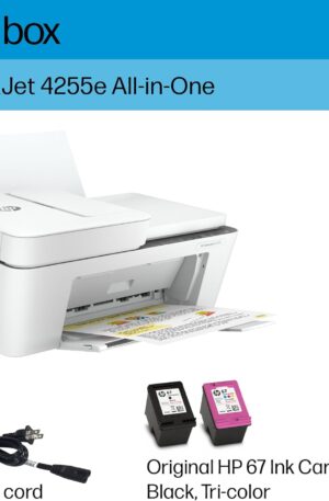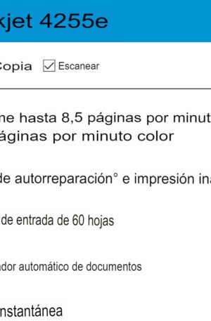 La HP DeskJet 4255e es una impresora multifuncional compacta, ideal para el hogar o pequeñas oficinas. Gracias a su diseño moderno y funcional, permite imprimir, escanear y copiar desde un solo equipo, ahorrando espacio sin sacrificar rendimiento.